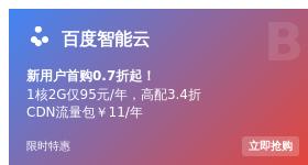 百度智能云今天推出云服务器特惠活动,新用户首购低至0.7折,高配机器新老用户限量秒杀3.4折起,另还有多款爆款促销,其中100GCDN国内流量包仅¥11/年。